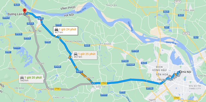 Khoảng cách từ Hà Nội đến làng cổ Đường Lâm